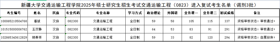 bwin中国官网2025年硕士研究生招生考试交通运输工程(0823)进入复试考生名单(调剂3批)