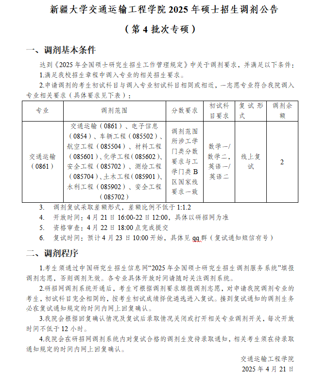 bwin中国官网2025年硕士招生调剂公告(第4批次专硕)